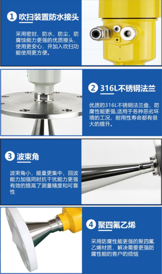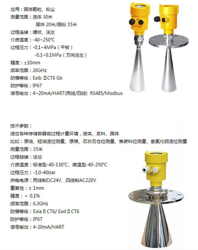 高頻雷達液位計是一款采用脈沖原理非接觸式雷達物位計,可廣泛應用于測量液體、漿料及粘稠物等的距離、物位、體積、重量及明渠流量,也可用于測量粉末、顆粒、塊狀等固體介質。即使在多粉塵、有攪拌的應用場合中,也可以穩定測量。